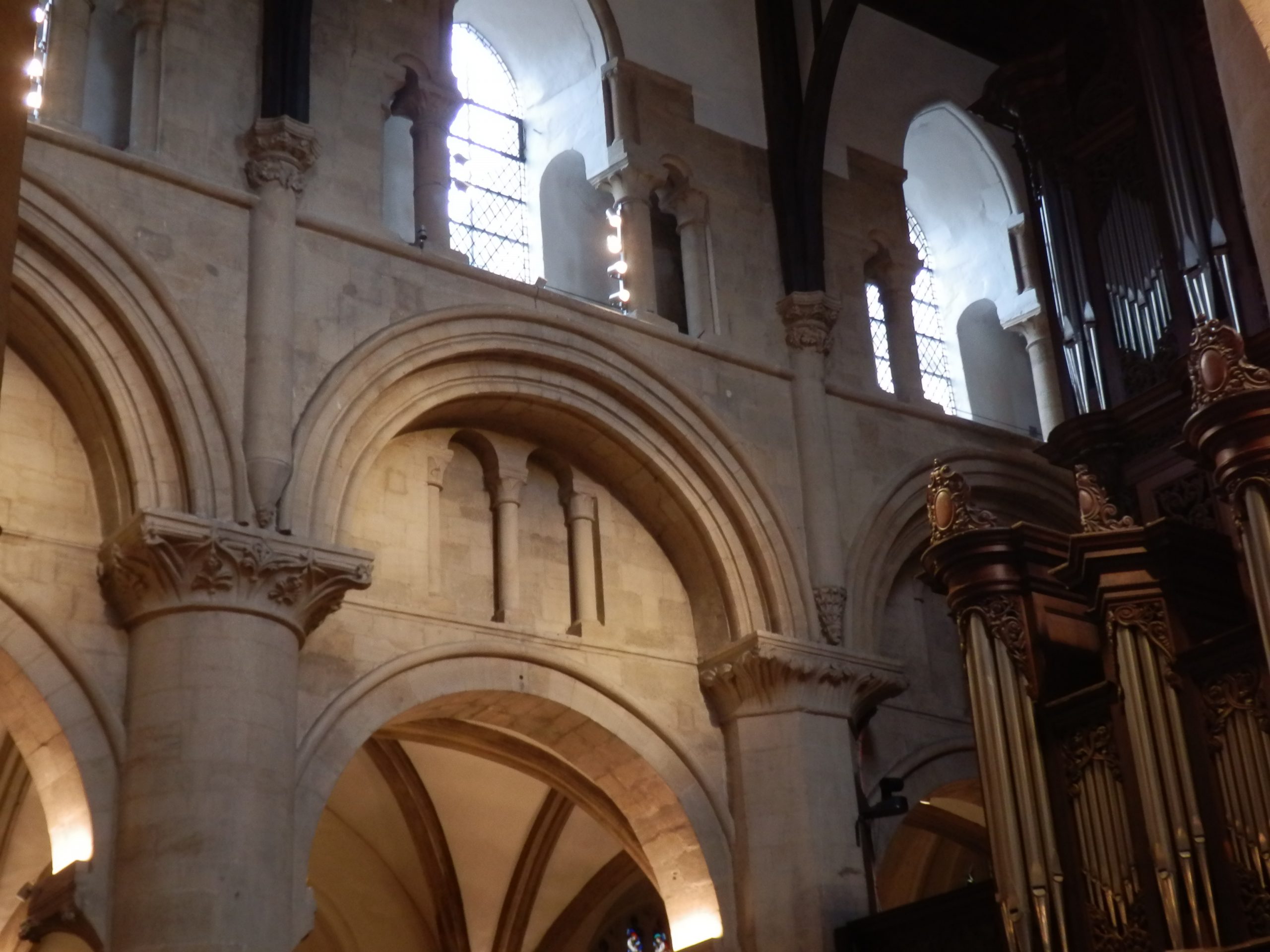 Phase II works involved isolating and removing the lights in the South Aisle, the Choir Stalls, the Nave and the underside of the Organ Loft, then installing modern lighting to replace them. We incorporated the new lighting into the existing emergency lighting system using change over and hold off relays, and the same type of LED tape was installed around the capitals of the South Aisle.